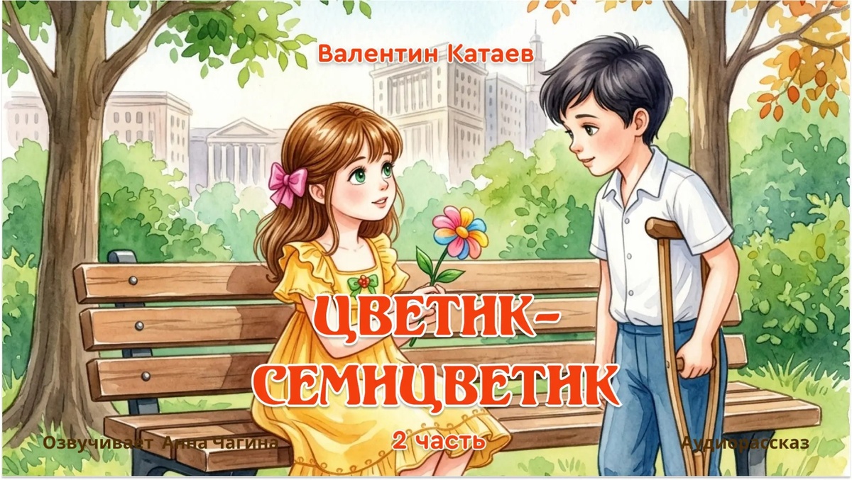 Валентин Катаев. 2 часть. Читает Анна Чагина Главная героиня сказки — девочка Женя — неожиданно получает от незнакомой старушки волшебный цветок с семью разноцветными лепестками, способный исполнять желания. Для этого нужно оторвать один из лепестков и произнести заклинание: «Лети, лети, лепесток, Через запад, на восток, Через север, через юг, Возвращайся, сделав круг. Лишь коснёшься ты земли — Быть по-моему вели» Как же она распорядится лепестками и их силой, слушайте во сторой части этой удивительной истории. Слушайте сегодня в 17 30 по МСК С любовью ❣️ 1001 СКАЗКА Мы в Telegram Мы в MAX Публикуем здесь одновременно Мы в ВК Здесь больше эксклюзива