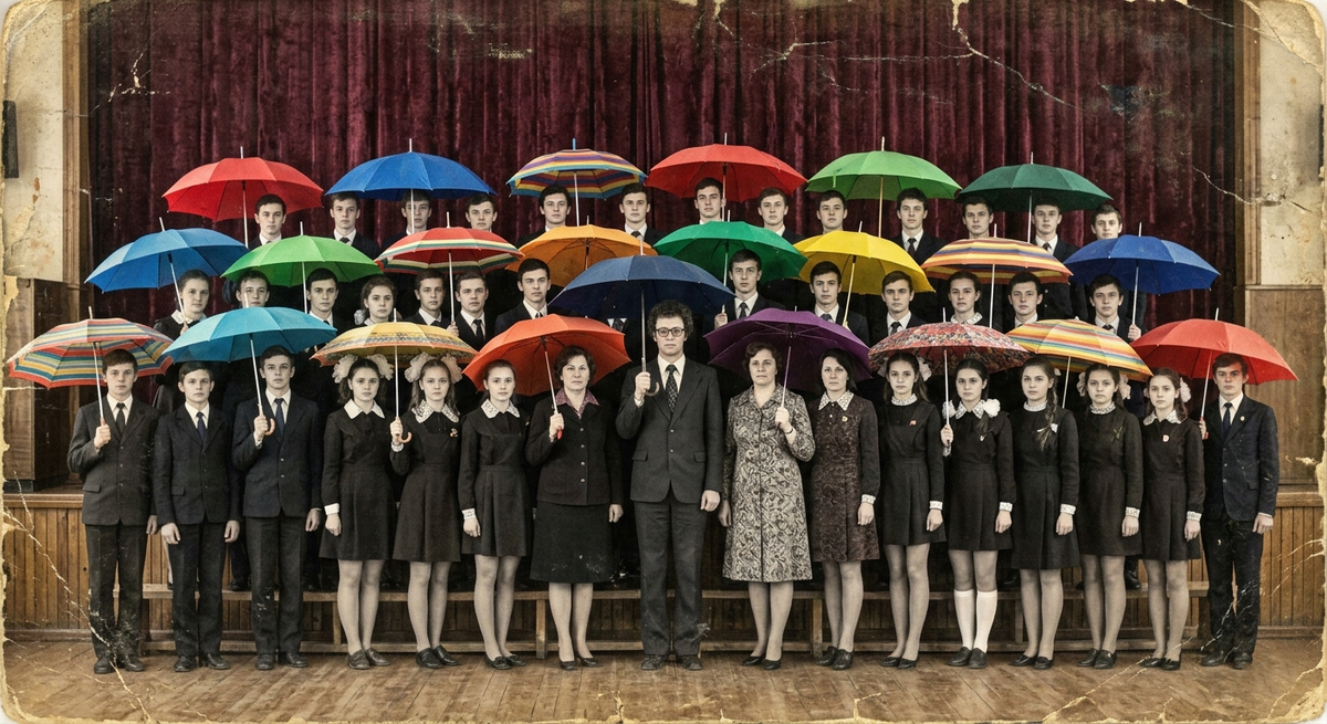 На экране монитора — старое фото из сети, из общего хранилища забытых дней. Мой класс, выпускной семьдесят восьмого года. Все стоят в три ряда в школьном актовом зале, на фоне видавшего виды плюшевого занавеса, — заполняя собой пустоту пространства; смотрят в объектив серьёзно и окончательно, словно уже исполнили всё своё назначение на земле. Серьёзные, правильные — как люди, знающие своё место в мире. А меня там нет. Я отсутствую в их общем числе, и место моё осталось незанятым, зарастая сорок пять лет тишиной и пылью. Будто я и не стоял никогда на этой земле вместе с ними, не дышал одним воздухом, не грелся одним солнцем. Я гляжу на эту выцветшую бумажку, на потрескавшуюся эмульсию — и вспоминаю, как всё это было на самом деле. Сначала все вдруг решили сделать фото в школьном саду. Садом это называлось по привычке, по расписанию, по бумаге. На деле же — несколько деревьев, кусты сирени да тополя, корявые от ветра и оттого, что их некому было обрезать. Я теперь уже не припомню точно,