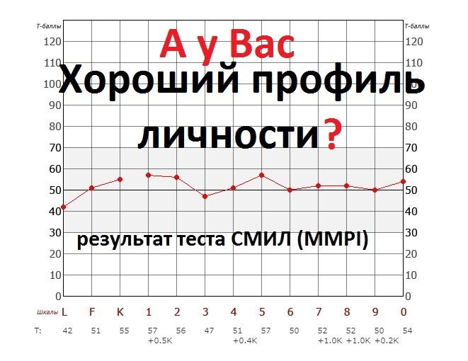 Когда набрано от 48 до 52 Т-баллов, тогда взгляды прошедшего тест СМИЛ в целом совпадают с требованиями окружения, настроение устойчивое, без беспричинных колебаний.