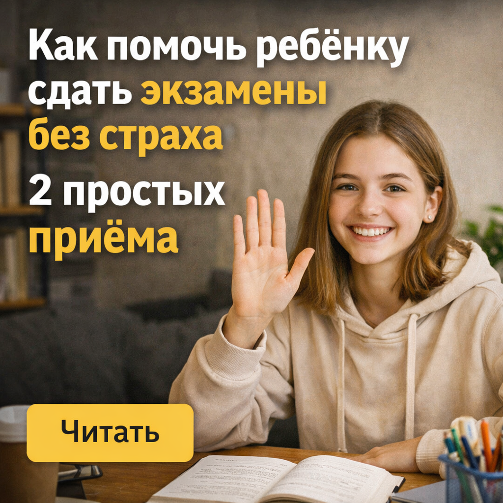 ✔ «Мы на твоей стороне» Удивительно, но после этого дети начинают учиться лучше, а не хуже. Потому что исчезает парализующий страх. Перед экзаменами подростку нужен не контролёр.