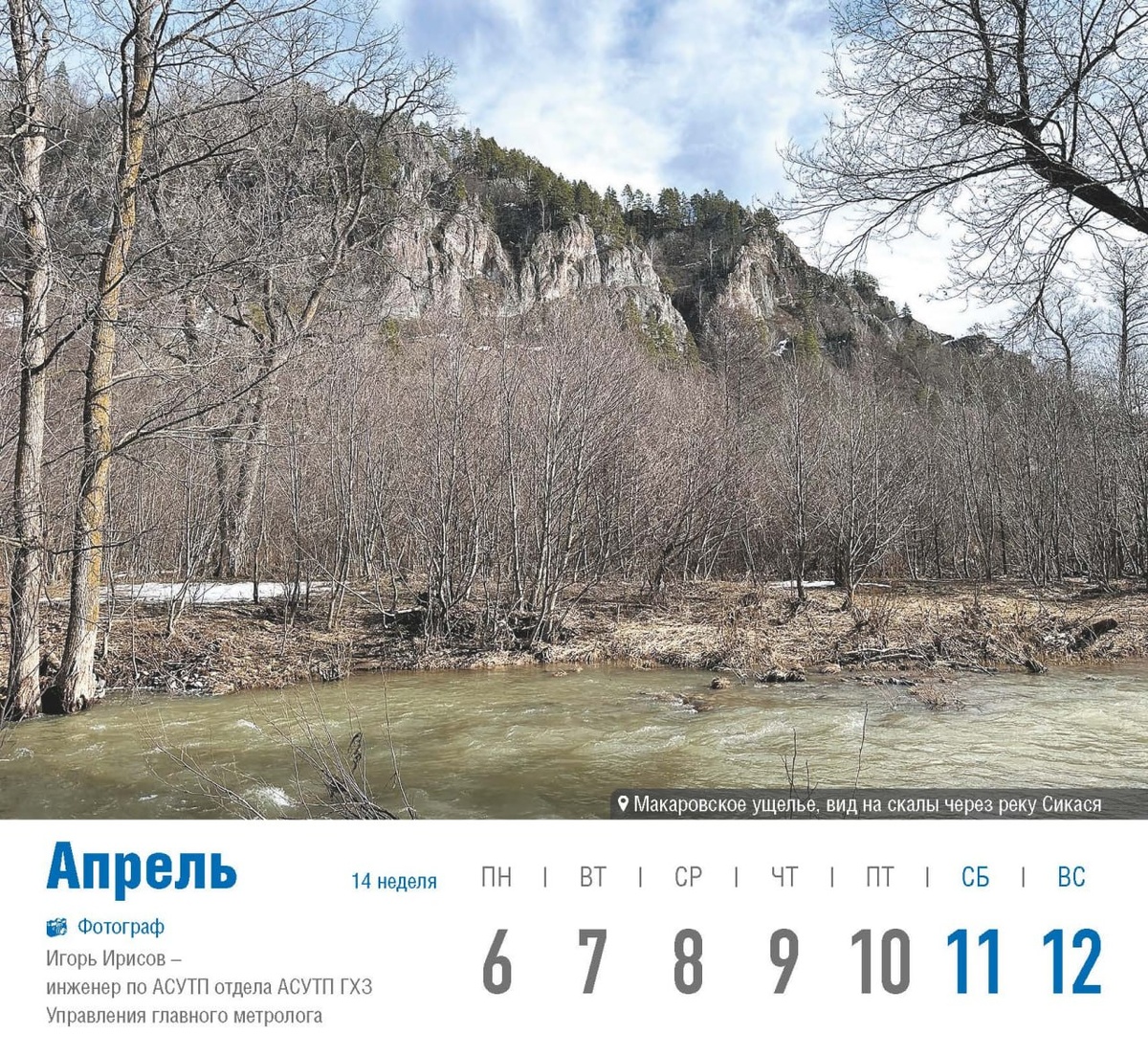 набирает силу и красоту. Фотографий этого природного явления в интернете можно найти тысячи, но вот Игорь Ирисов, инженер по АСУТП отдела АСУТП ГХЗ Управления главного метролога, прислал фотографию из Макаровского ущелья с другого ракурса. - В начале апреля не всегда можно добраться непосредственно до водопада, но в ущелье не только водопад достоин внимания. Мы остановились на берегу реки в потрясающе красивом месте, в тот день там гуляло очень много людей и увидев такую красоты я просто не мог не запечатлеть её, - рассказал Игорь Ирисов – Много путешествую по Башкирии и из каждой поездки привожу серию фотографий. Снимаю сейчас в основном на телефон, но порой делаю снимки и на фотоаппарат и даже квадрокоптер. #ГазпромнефтехимСалават #ГПНС #Календарь