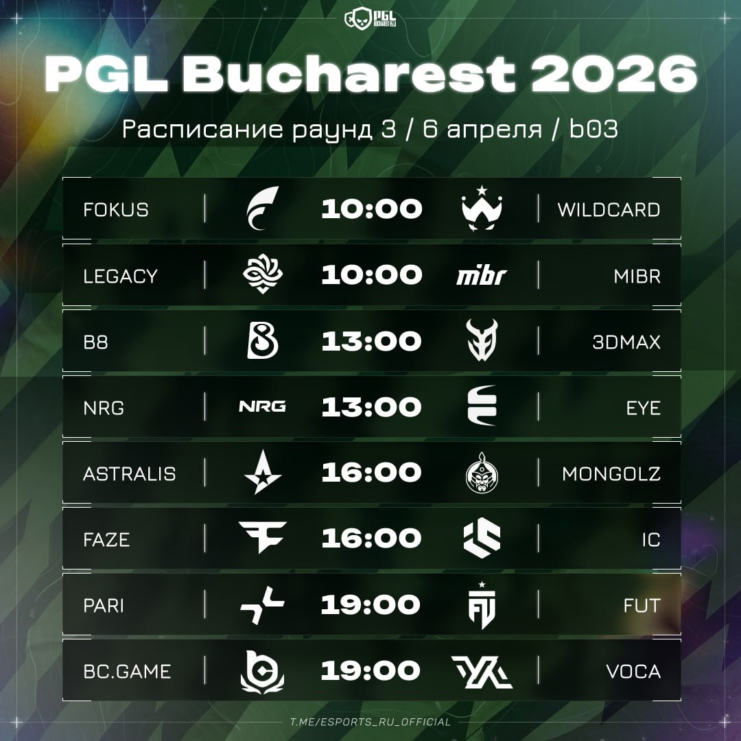 🗓 Расписание третьего игрового дня PGL Bucharest 2026