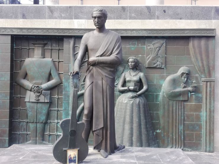 Выбери свой маршрут! В рамках проекта "Пешеходные квесты по городам России" первые 10 человек получат промокод для бесплатного прохождения квеста. Чтобы получить промокод пишите мне: Памятник Владимиру Высоцкому в Самаре - это не просто мемориал, а сложное художественное высказывание, созданное близким другом поэта Михаилом Шемякиным. Он был открыт 25 января 2008 года к 70-летию поэта, у Дворца спорта, где Высоцкий выступал в 1967 году. История создания В 1967 году в Куйбышеве (сейчас - Самара) прошли пять концертов Высоцкого. Первые два состоялись в мае, тогда поэта еще мало кто знал. Но после выхода фильма "Вертикаль" летом того же года популярность Высоцкого резко возросла. И уже в ноября Дворец спорта собрал шеститысячную аудиторию. Одним из организаторов этих концертов был Всеволод Ханчин, друг Высоцкого, которому он безоговорочно доверял и именно он был инициатором создания монумента. Инициативу поддержал бывший губернатор Самарской области Константин Титов, который также участв