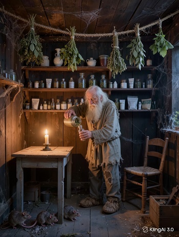 1. Где-то среди гор, где-то между рек Жил в глухой деревне чудо – человек. Жил совсем один он, без жены, детей, Звали человека «чудо – дед Матвей». Седовласый старец, изо льна рубаха, Старые штаны да солдата бляха, Борода по пояс и с прищуром взгляд, На одежде деда вшито сто заплат. Знала вся округа про дела Матвея. Ведал он о травах: лепестки шалфея, Зверобой, чабрец, ромашка, Клевер, а в народе – кашка, Подорожник, белена, Череда, да сон-трава – Всё хранил в своей кладовке, В мешковине на верёвке. Кто в деревне захворал, На подмогу деда звал. Дед, как будто видел хворь, Знал в лицо ангину, корь. Знал он чем убить болезнь-заразу, Не отказывал Матвей ни разу! Добротой за доброту платили люди: Молоко, горячий свежий хлеб на блюде. Пирожки несла в корзине тётка Маша, Дочь её лечил Матвей, хворала Глаша. Чувствовал Матвей, что нужен людям, И не важно был ли хлеб на блюде. 2. Часто в лес ходил старик Матвей. Лес – аптека для земных людей. К каждой травке наклонялся, Разглядеть листок стара