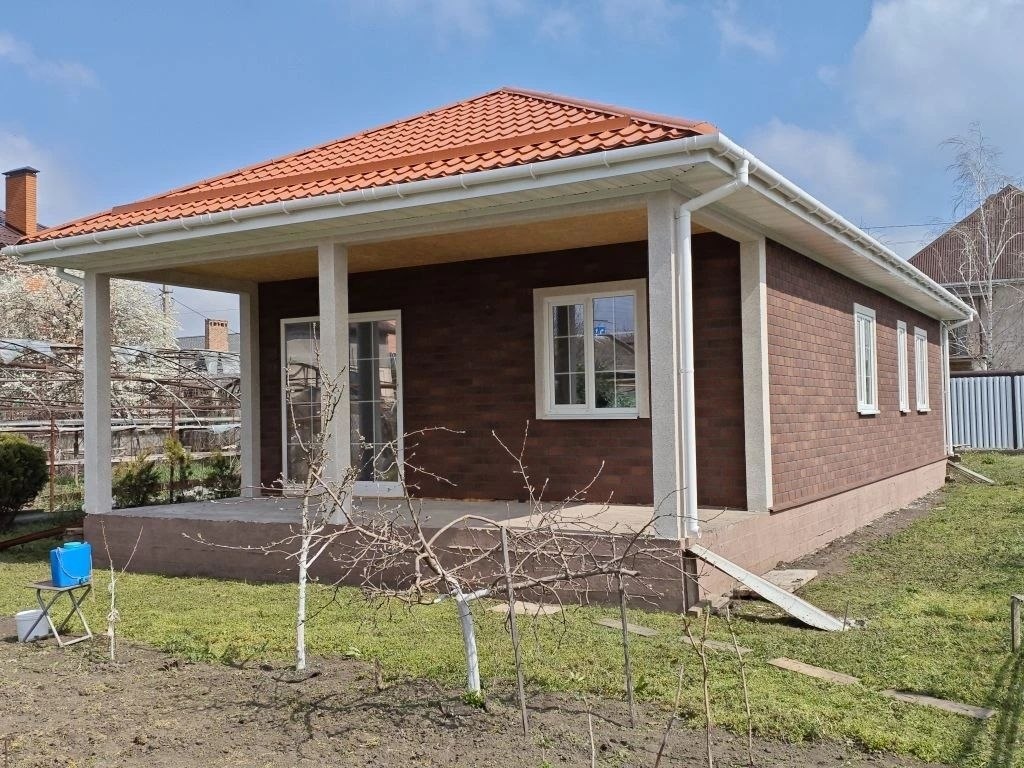 Основные стены покрыты гибким кирпичом Хауберг, а вот угловые решения и оконные обрамления мы сделали специальным уголком с применением мраморной крошки!