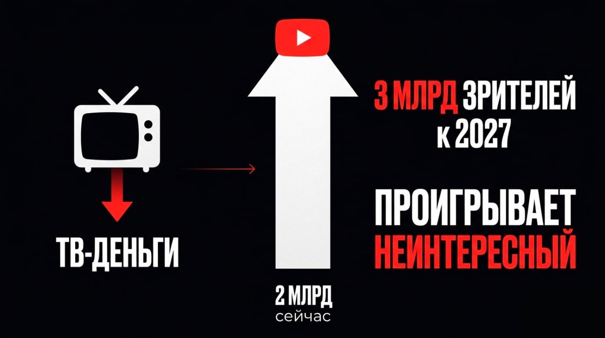 3 миллиарда зрителей, Карл! Сейчас 2 миллиарда в сутки. Данные Omdia - отраслевая конференция, не чьи-то прогнозы. Телевидение туда лезет. Крупные студии уже называют это партнерством - но не из щедрости. Просто аудитория на YouTube, вот и все объяснение. ТВ-деньги идут туда, где зрители. Для маленьких каналов это значит одно: качество продакшена в среднем по больнице будет расти. Шоу с командами сценаристов окажутся в тех же рекомендациях что и твой канал, и мой канал, и всех простых ребят. Но тут есть нюанс. Корпоративный глянец существовал всегда - и всегда были люди, которым он надоедал раньше остальных. Сейчас платформа активно двигает живых людей с живым мнением. Видно в цифрах. Да и зрители чувствуют, когда за кадром голова, а когда бюджет с повесткой. Маленький канал не проигрывает автоматически. Проигрывает неинтересный. Те, кто разберется с этим сейчас - окажутся в правильной позиции через год. Буквально - рынок еще в сильнейшем росте. Маленькие каналы выживут в этой г