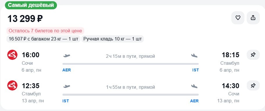 🇹🇷Подборка билетов в Стамбул в обе стороны