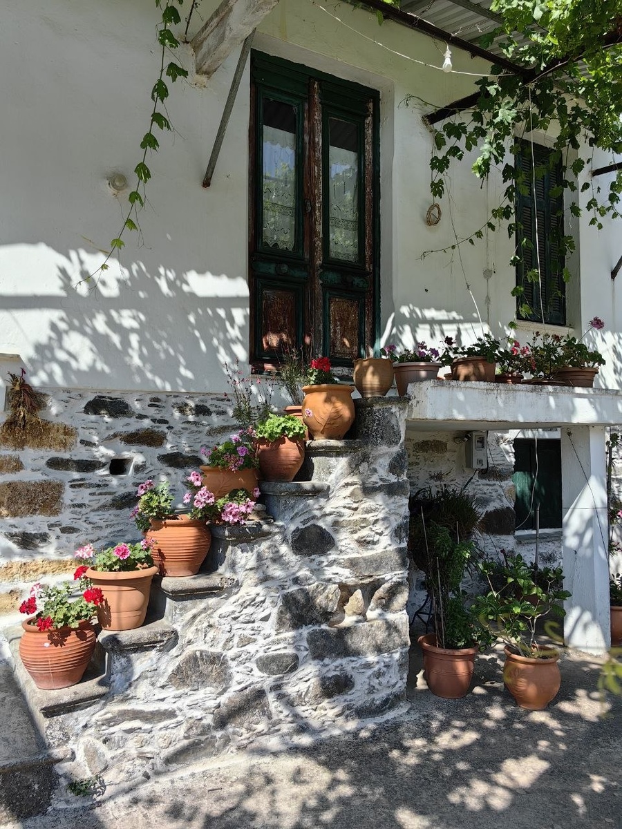 Доброе утро, Καλημέρα! Всем хорошего настроения и отличной недели ☀️ Вот такой милый домик и исполинская сосна встречают нас в Палеа Румата (Παλαιά Ρούματα) на выходе из ущелья Вавуледо.