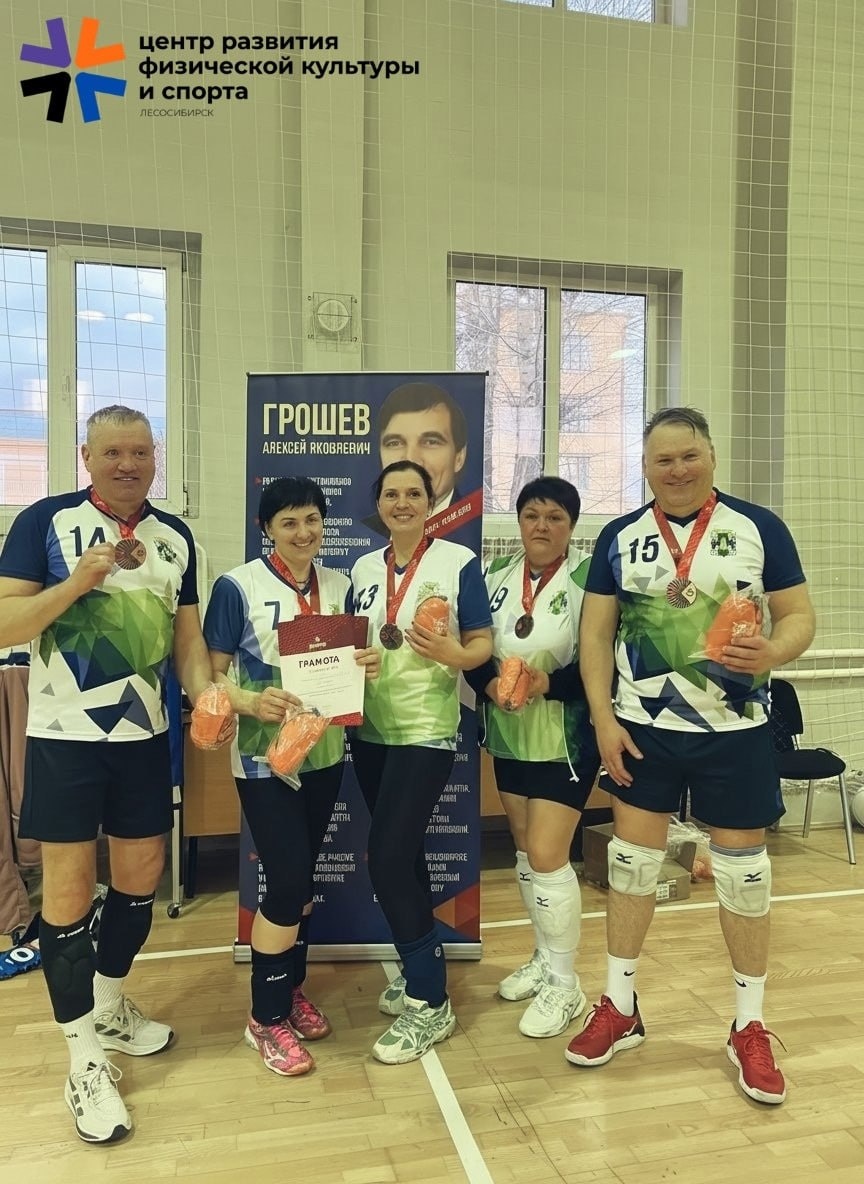 ! 🎉 В Доме спорта имени Михаила Дворкина стартовал 26-й Кубок города по волейболу, посвященный памяти Алексея Яковлевича Грошева. Команда "Сибирский соболь" из Енисейского муниципального округа (город Лесосибирск) в составе: -Калиничева Лиля -Осипова Дина -Звягинцева Вероника -Иванов Александр -Иванов Игорь Завоевала почётное 3 место в группе "Юность-5" (смешанные команды "Миниволей": 2 мужчины, 2 женщины, возраст 50+). Отличный результат, команда! Так держать! 💪🏐 Для справки: Алексей Яковлевич Грошев – легенда красноярского спорта. Прошел путь от учителя физкультуры до председателя спорткомитета Красноярска. Развивал городские спартакиады, проект «Стартуют все». С 2000 года в краевой столице проходит турнир по волейболу памяти Алексея Яковлевича.