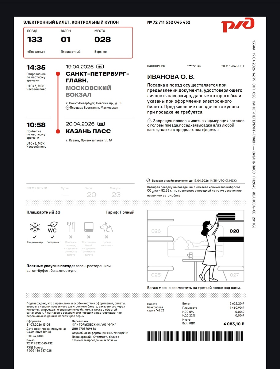 🚂 19‑го числа — поезд № 133, маршрут Санкт‑Петербург → Казань!