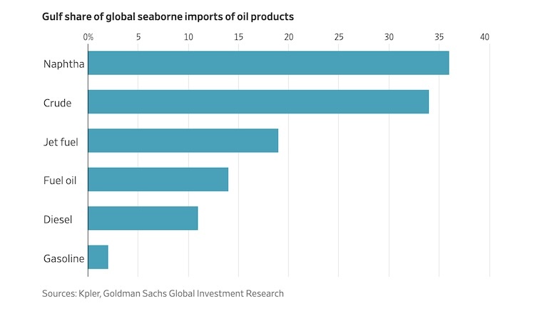 Происходящее в Азии — предвестник того, что ждет страны, зависящие от импорта энергоносителей с Ближнего Востока Доля стран Персидского залива в мировом импорте нефтепродуктов. Источник: Wall Street Journal Нефтяной шок, вызванный войной в Иране, уже прокатился по Азии: заводы экономят энергию и сокращают производство, а на некоторых заправках вводят ограничения на продажу топлива. Экономисты считают, что Европу и Африку ждет то же самое, потому что они тоже зависят от импорта с Ближнего Востока. Блокада Ормузского пролива Ираном, по данным Oxford Economics, сократила мировые поставки нефти на 10% по сравнению с довоенными потребностями. Пролив также является критически важным маршрутом для сжиженного природного газа (СПГ), который многие страны используют для производства электроэнергии и удобрений. Азия и Азиатско-Тихоокеанский регион в целом первыми столкнулись с серьезными ограничениями поставок. Этот континент географически ближе к Персидскому заливу, а значит, большинство судов,