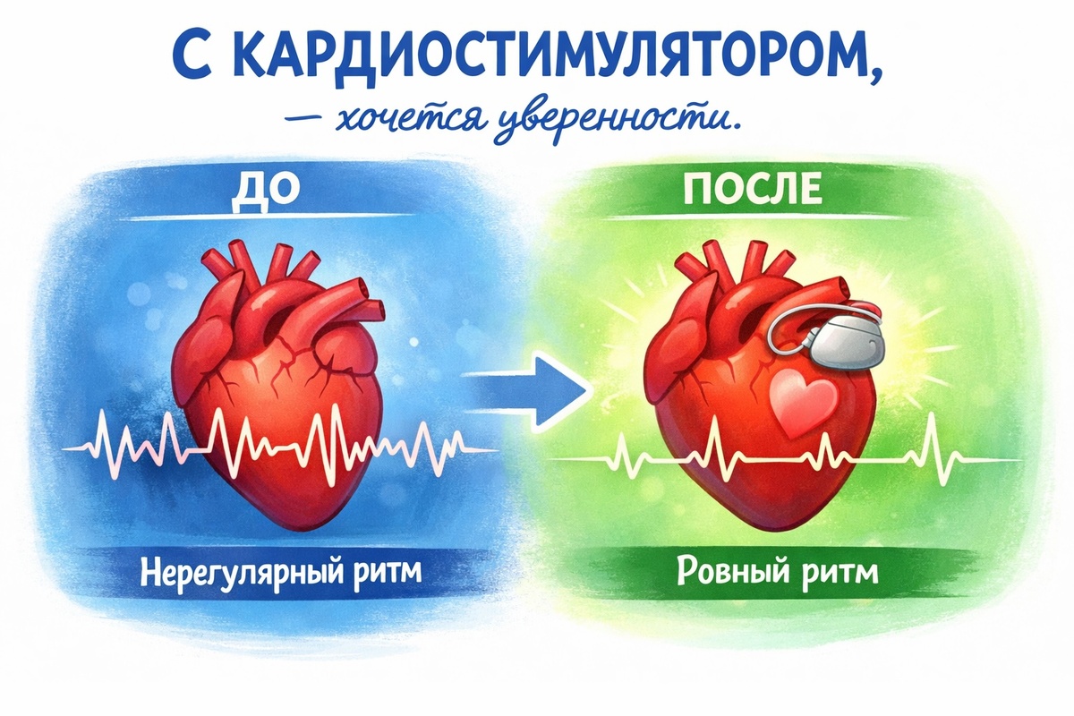 Диагноз поставлен, врач рекомендует имплантацию кардиостимулятора — и сразу возникает масса вопросов. Что это за операция? Больно ли? Чего ожидать? Мы подготовили подробный и понятный разбор — без сложных терминов, только нужное. Кардиостимулятор — это небольшое устройство, которое хирург помещает под кожу в области грудной клетки. Его задача — контролировать ритм сердца и при необходимости посылать электрические импульсы, чтобы сердце билось правильно. Большинство кардиостимуляторов состоят из двух частей: Существуют также бесэлектродные кардиостимуляторы — они вживляются непосредственно в полость сердца без проводов. Данная статья посвящена стандартным устройствам с электродами. Врач заранее объяснит всё необходимое. В рамках подготовки вас спросят: Врач проведёт осмотр и может назначить дополнительные исследования: Также вам сообщат: Не стесняйтесь задавать любые вопросы — это ваше право и ваша безопасность. После вмешательства вас переведут в палату наблюдения. Медицинский персонал