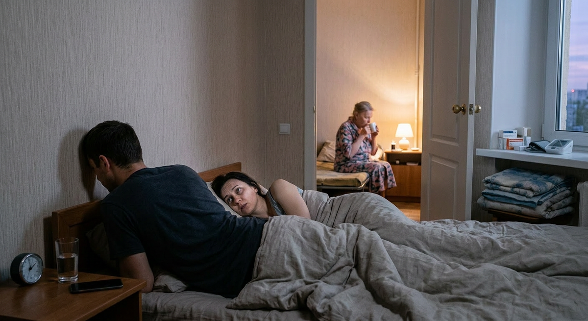 За дверью в этот момент щёлкнул выключатель в гостиной. Потом послышалось мамино покашливание, скрип раскладушки и тихий звон ложки о кружку — она по ночам пила тёплую воду «от желудка». И в этой обычной, до смешного бытовой возне вдруг стало ясно: мы уже давно живём не вдвоём. И дело даже не в квадратных метрах. Просто в квартире всё время есть кто-то третий. Со своим дыханием, своими шагами, своим телевизором, своими комментариями, своим присутствием в каждой паузе.
