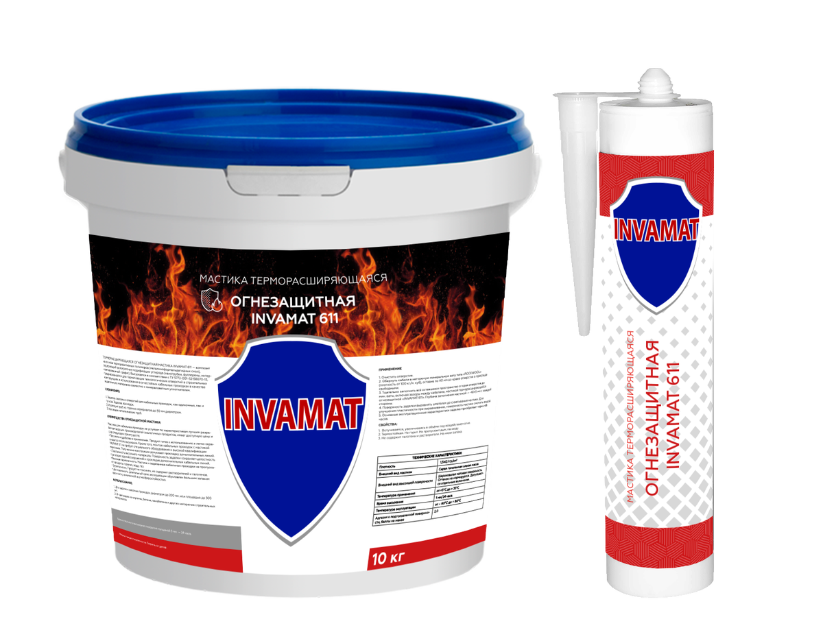 ИНВАМАТ 611 — это терморасширяющаяся огнестойкая мастика, разработанная и производимая в России. Это композит на основе термореактивных полимеров (меламиноформальдегидных смол), содержащий аллотропные модификации углерода — нанотрубки, фуллерены и интеркаллированный графит.