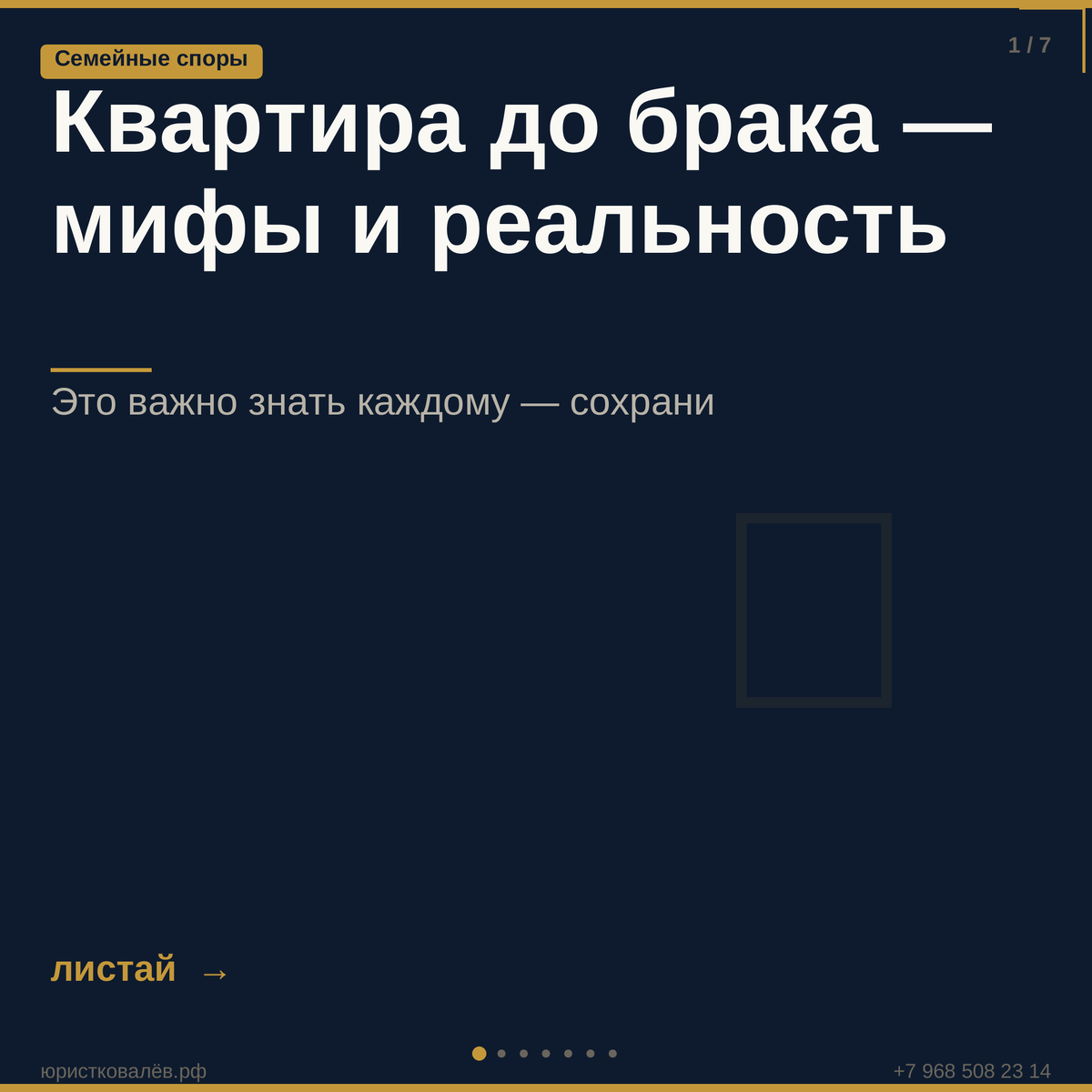 Многие уверены: раз купил квартиру до свадьбы — при разводе она точно останется. Но статья 37 Семейного кодекса говорит иное. Когда добрачная квартира становится совместной: • Капитальный ремонт за счёт совместных средств • Ипотека погашалась из общего бюджета • Стоимость квартиры существенно выросла от вложений в браке Как защититься: 1. Брачный договор у нотариуса 2. Сохраняйте выписки с личного счёта 3. Оформляйте ремонтные работы документально Реальный кейс: клиент сохранил квартиру за 7 млн благодаря банковским выпискам за 5 лет.