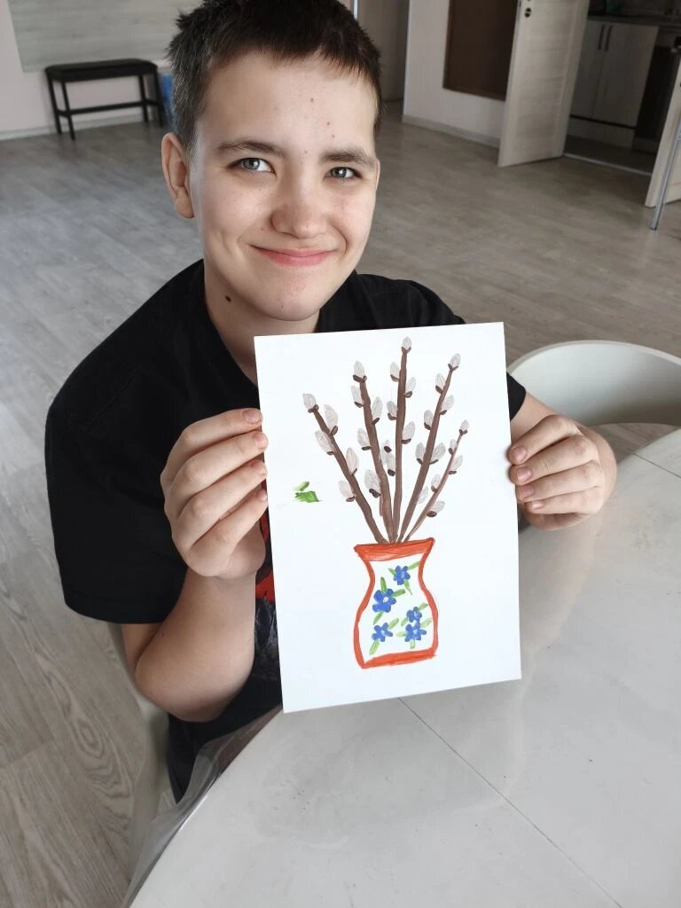 🌿 Вербное воскресенье — один из самых светлых и добрых весенних праздников. В этот день в храме освящают нежные веточки вербы, а дома наполняются особым уютом и теплом. Рассказываем, как мы знакомились с этим праздником. Вместе с ребятами читали сказки о вербе и весне, говорили о том, почему так важно быть добрыми, заботиться о близких и беречь природу. 🌾 А ещё мы мастерили сами! У каждого получилась своя вербочка — нежная и весенняя. Вот как это было: 🖍️ Сначала рассмотрели настоящие веточки — какие они гибкие, коричневато-красные, с пушистыми почками. Потрогали, понюхали весну. ✂️ Потом взяли цветную бумагу, клей, кисточки и краски. Кто-то делал аппликации: вырезал тонкие веточки и приклеивал на них аккуратные овальные почки. А кто-то рисовал вербу — коричневыми и белыми красками, чтобы передать её нежный пушистый наряд. Работы получились совсем разными, но каждая — с душой. Теперь наши группы украшают целые вербные букеты, сразу стало светлее и по-праздничному тепло. Пусть в каж