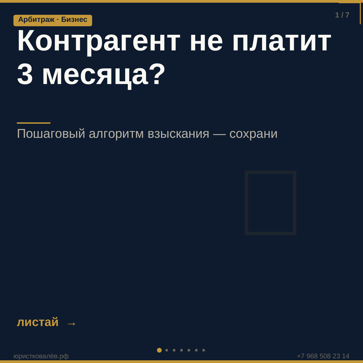Если контрагент не платит, многие предприниматели ждут и надеются. А долг тем временем растёт. Алгоритм взыскания: 1. Претензия с требованием оплаты — даём 30 дней. 2. Иск в арбитражный суд — прикладываем договор, акты, переписку. 3. Решение суда за 2–3 месяца (по упрощённому производству — быстрее). 4. Исполнительный лист — приставы взыскивают принудительно. Что взыщете помимо долга: • Проценты по ст. 395 ГК РФ • Все судебные расходы • Государственная пошлина — за счёт должника Вывод: чем дольше должник тянет — тем больше заплатит в итоге.