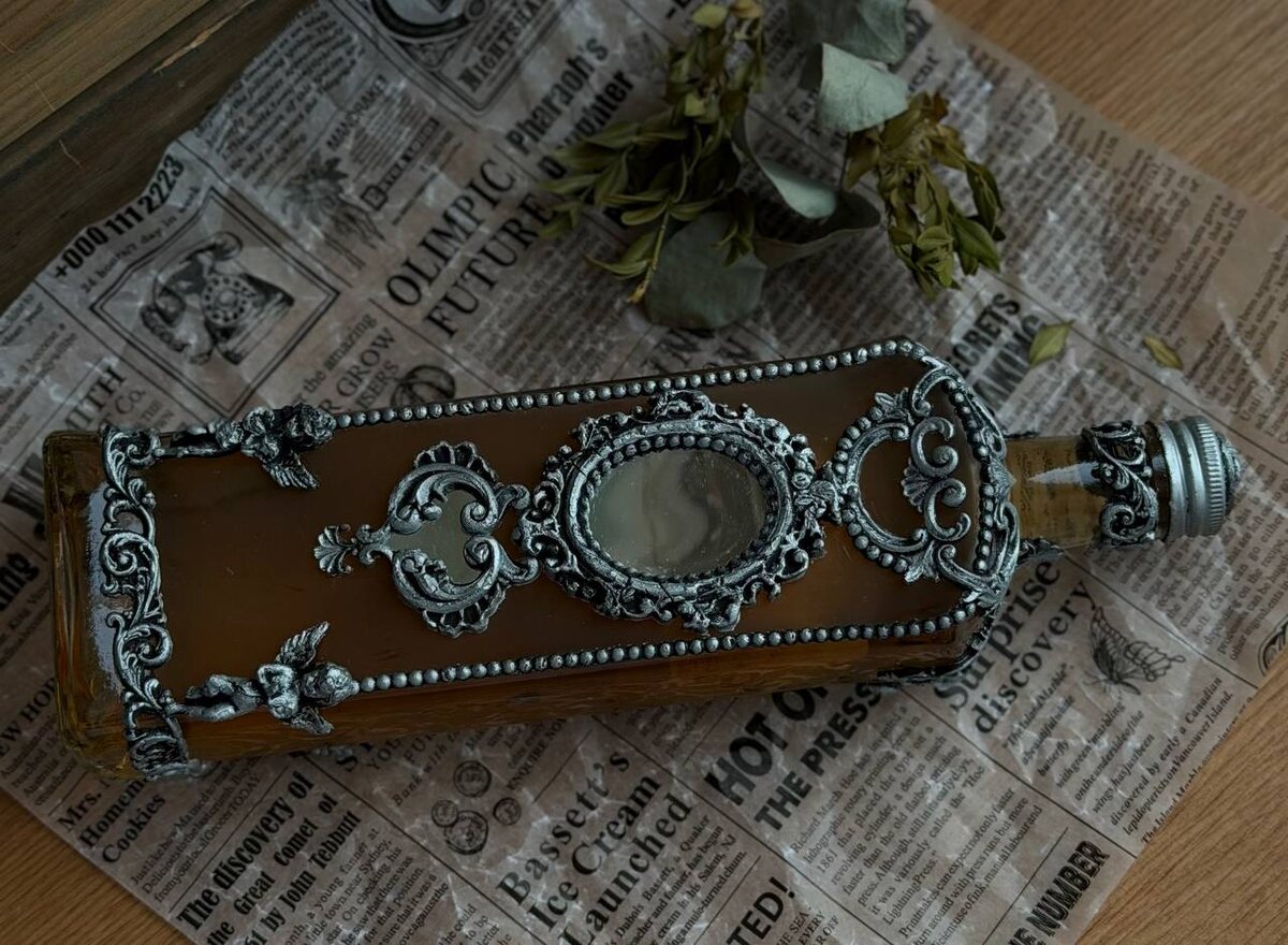 🥤 Зеркальные пластинки я купил в Fix Price пару лет назад, и всё это время не понимал, куда их использовать. И вот наконец-то дошли до них руки. Сначала я хорошо обезжирил бутылку, потом нанес состав для травления стекла через трафарет, чтобы получился рисунок. Особенно красиво это выглядит, когда в бутылке есть жидкость — матовые и прозрачные участки начинают по-разному пропускать свет. На основные части бутылки, состав нанёс без трафарета. Лепнину сделал с помощью жидких гвоздей — она получилась плотная, но при этом немного гибкая. В этот раз я не пытался сделать эффект старого серебра, просто покрыл всё серебряной краской. Хотя, если честно, что-то похожее всё равно получилось. Мне нравится, как здесь сочетаются матовое стекло, зеркальные элементы и рельеф. Всё вместе смотрится спокойно, но интересно. И да, бутылка не только для красоты — ей можно пользоваться. Мыть, наливать напитки, ставить на стол. Как вам? 💭