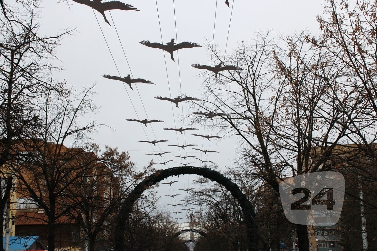 Над бульваром вновь будут парить 555 белых журавлей. Большую их часть уже смонтировали на металлических тросиках.