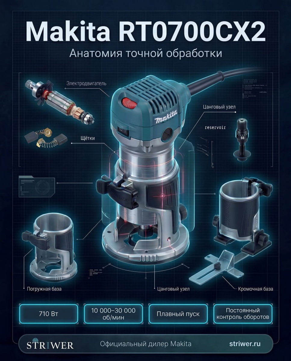 📍 Компактный кромочный фрезер для точной и аккуратной обработки. Подойдёт для кромки, пазов, врезки и чистовой подгонки, когда важны контроль и предсказуемый результат. 🔧 • 710 Вт — уверенная работа под нагрузкой • 10 000–30 000 об/мин — широкий диапазон под разные задачи #STRIWER #Makita #MakitaRT0700CX2 #фрезер #кромочныйфрезер #инструментMakita #столярныйинструмент 👉 striwer.ru 📞 8 499 350 87 47 📩 info@striwer.ru