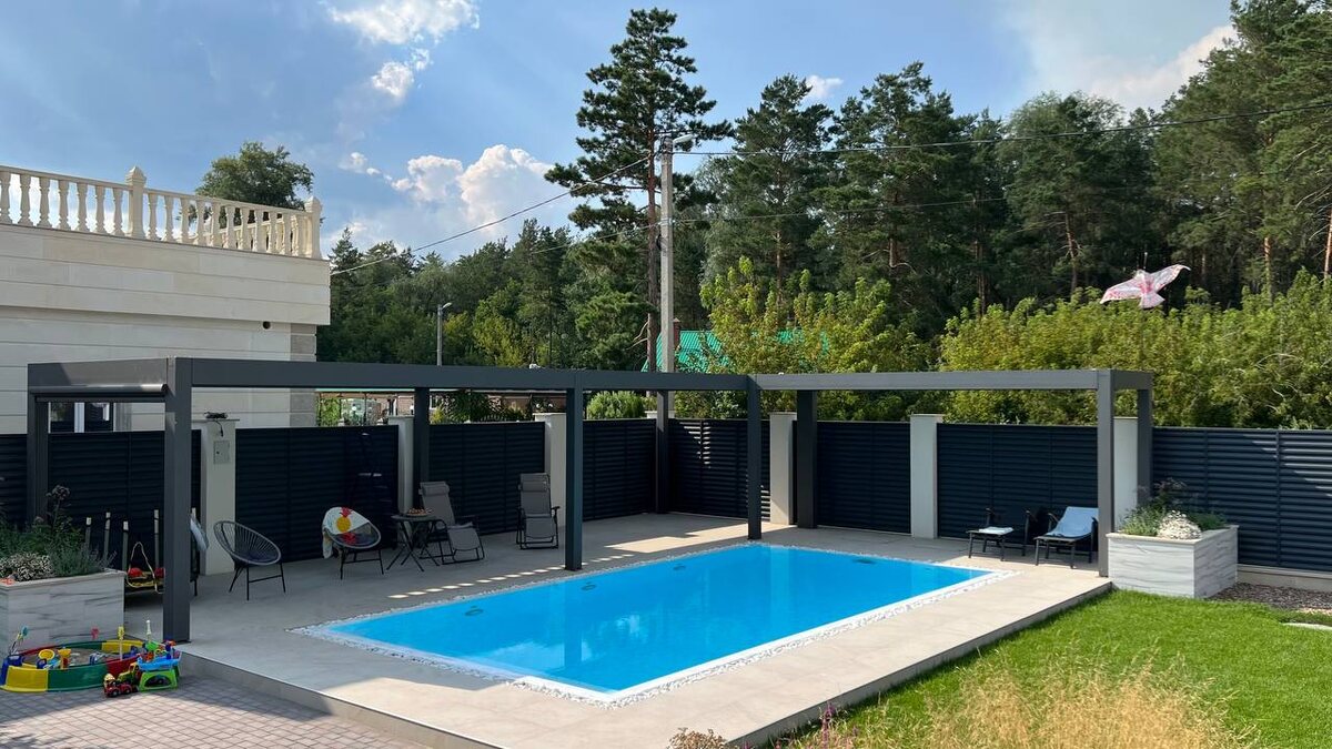 👇 Биоклиматическая пергола с поворотными ламелями и дистанционным управлением — это современная система, которая позволяет полностью контролировать комфорт на улице: свет, тень, воздух и защиту от осадков Почему это реально удобно👇 🔺Регулируешь солнце и тень Ламели поворачиваются (до 90–180°), поэтому ты сам решаешь — открытое небо или приятная тень 🔺Комфортный микроклимат Можно настроить вентиляцию и освещение так, как тебе нужно — без духоты и перегрева 🔺Защита от дождя и снега В закрытом положении крыша становится герметичной и отводит воду, благодаря силиконовым уплотнителям 🔺Работает в любую погоду Конструкция устойчива к ветру, солнцу и перепадам температур 🔺Управление с пульта Меняешь положение ламелей, не вставая с кресла — всё автоматизировано 🔺Современный внешний вид Подходит под любой дом и делает пространство дороже визуально 🔺Дополнительные опции Подсветка, обогрев, остекление — можно собрать идеальную зону отдыха. Ставь + в комментарии, если хочешь узна