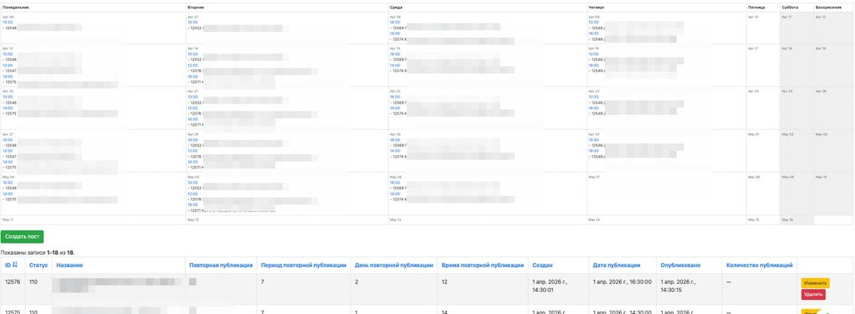 В Apimonster начинаем тестировать отложенные посты с функцией повторной публикации с заданными периодом