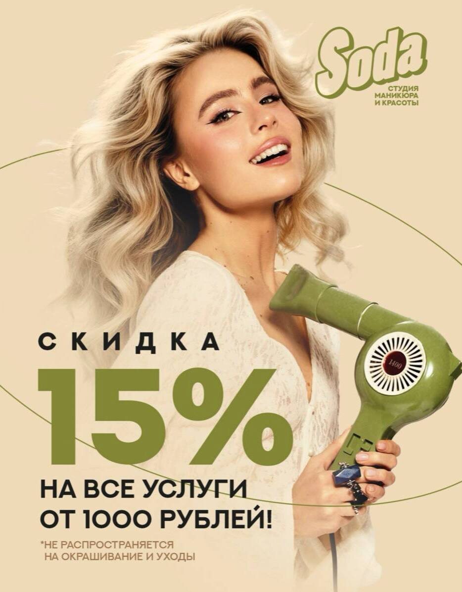 ! На первый визит действует приятная скидка, с которой попробовать наши услуги ощутимо приятнее💚 Это возможность спокойно оценить уровень сервиса🔟, познакомиться с мастерами и окунуться в атмосферу сети. Понять, откликается ли вам наш подход и стиль работы. Важный момент, чтобы все было честно и прозрачно. Скидка на первый визит не распространяется на окрашивание и уходы для волос. Она не суммируется с другими акциями и специальными предложениями. Начать всегда проще, когда условия понятные. Записаться online 👇 https://samolet.sodanails.ru Позвонить или записаться в тг 👇 +79031762673