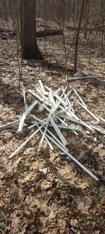 В Павлинском лесопарке, напротив дома 2, одно из близлежащих предприятий (альтернативно одаренные люди) утилизировало лампы дневного света