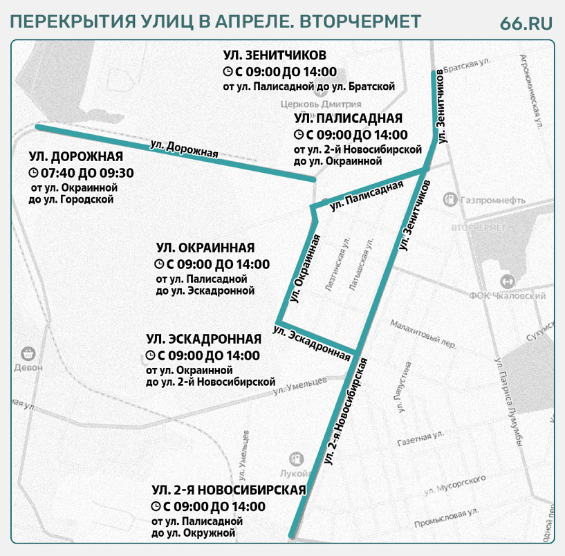 В апреле будет девять тренировок военных. Они пройдут на Вторчермете. Утром и днем 2, 7, 9, 14, 16, 21, 23, 28 и 30 апреля будут закрыты улицы:
