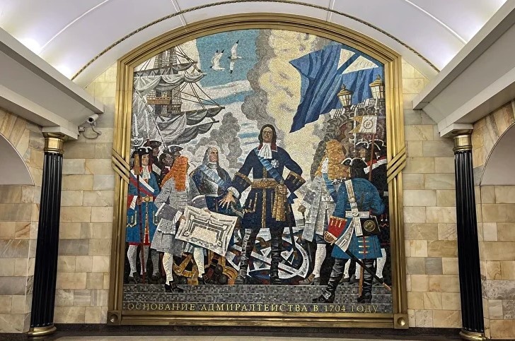 Что смотреть: в вестибюле целых пять мозаичных панно Александра Быстрова с жизнью Сенной площади XIX века. Там можно увидеть Пушкина, Гоголя, Толстого, Достоевского и даже Раскольникова с Соней. На одной из мозаик в центре композиции художник изобразил свою жену, а на мозаике справа – кот, живущий в семье автора.