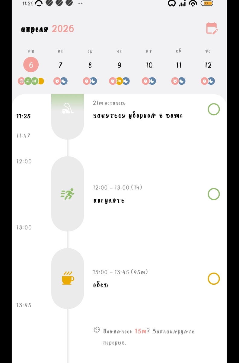 Приложение- планер. Тут можно создавать задачи, и, он будет напоминать во время начала задачи. Показывать сколько осталось и тд.