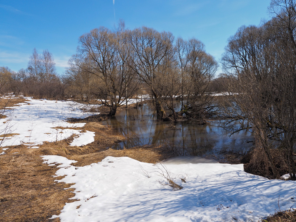 Вот и грачи в объектив попали - какая весна без грачей. Дальше по плану был небольшой привал с пикником. Для этого у нас тоже было традиционное место на берегу Луха рядом с деревней Городок.