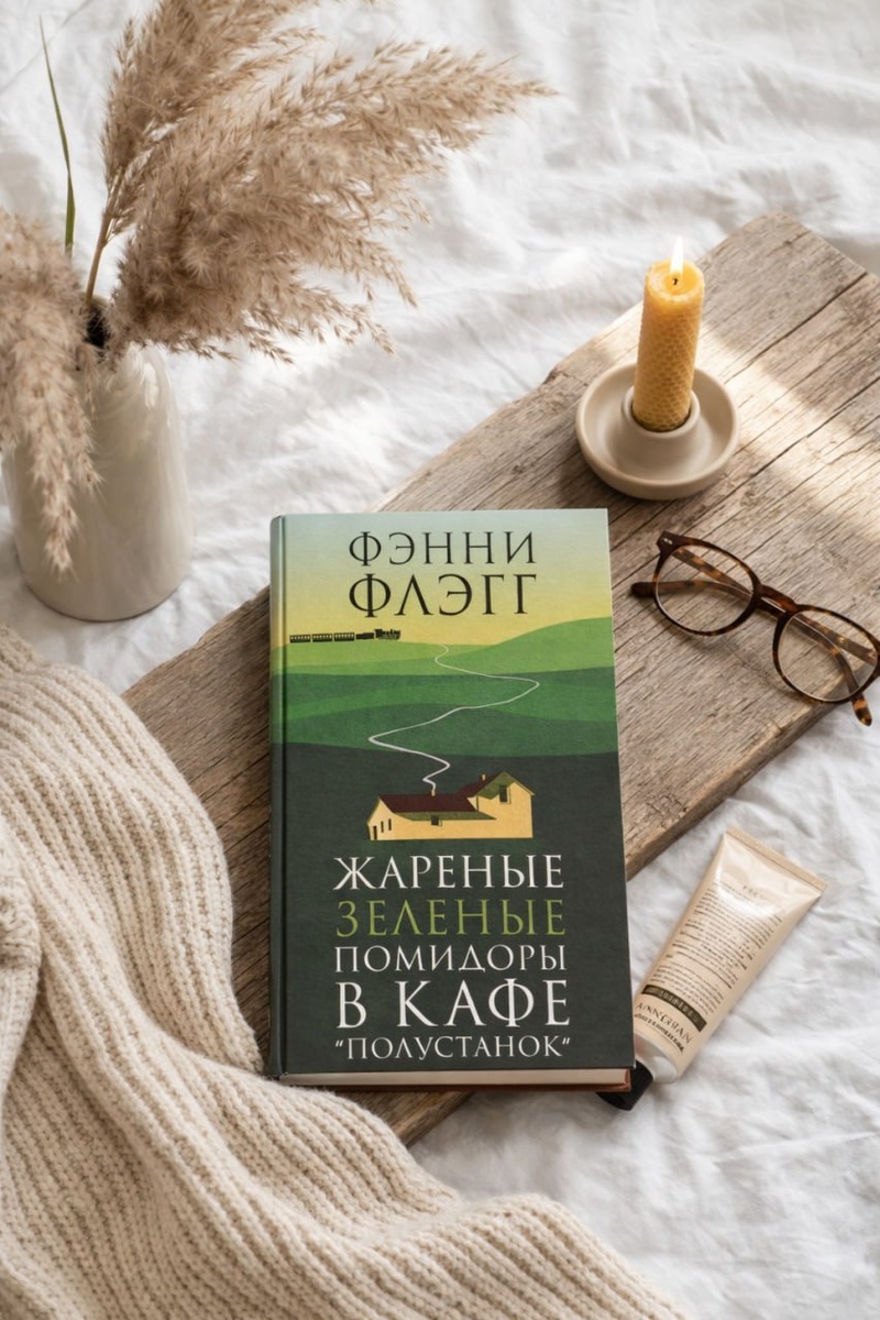 для понедельника 💖 🌟🌟🌟Иногда книга оказывается 🌟🌟🌟не просто историей, а местом, в котором вдруг начинаешь жить вместе с героями. 🍅 ЖАРЕНЫЕ ЗЕЛЁНЫЕ ПОМИДОРЫ В КАФЕ «ПОЛУСТАНОК» | Фэнни Флэгг 📍 О чём книга? Это история маленького американского городка, в котором переплетаются чужие судьбы, разговоры, потери, дружба, любовь, боль и надежда. Роман охватывает разные времена и складывается из множества голосов, воспоминаний и жизней, которые постепенно начинают ощущаться как что-то очень родное. 🌟 Мои впечатления В эту книгу я влюбилась почти сразу. Для меня это как раз тот роман, который хочется не просто похвалить, а сразу унести в любимые – туда, где у меня уже стоят «Унесённые ветром». Поначалу читать было немного сложно: из-за разных эпох и временных линий нужно время, чтобы привыкнуть к ритму. Но потом книга будто раскрылась, и я уже не просто следила за сюжетом, а чувствовала себя рядом с героями, внутри их мира. Мне очень понравилось, что здесь почти каждый персонаж