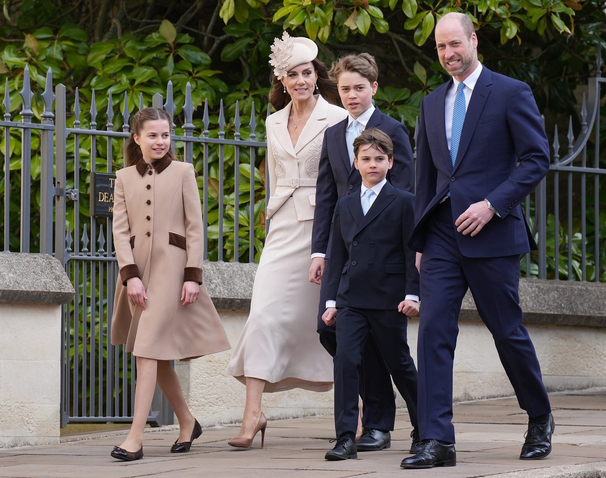 43-летний принц Уильям и 44-летняя Кейт Миддлтон впервые за долгое время появились вместе с детьми на официальном мероприятии. Семья посетила службу в часовне Святого Георгия в честь католической Пасхи. Принцесса Уэльская блистала в кремовом платье от Self-Portrait и новой шляпке. Принц Уильям выглядел безупречно в темно-синем костюме индивидуального пошива и ярком галстуке. 12-летний Джордж и 7-летний Луи почти повторяли стиль отца, лишь сменив галстуки на более светлые. Сделали они это ради сестры, 10-летней принцессы Шарлотты. Она выглядела очаровательно в голубом платье, которое виднелось под бежевым пальто Catherine Walker. В качестве обуви школьница выбрала балетки от Tory Burch. Уэльские прибыли на службу в сопровождении короля Карла III и королевы Камиллы. Также на мероприятии были замечены принцесса Анна и сэр Тимоти Лоренс, принц Эдвард и его 18-летний сын Джеймс, Питер Филлипс с невестой Харриет Сперлинг и их дочками от прошлых отношений, а также Леди Сара Чатто — дочь принц
