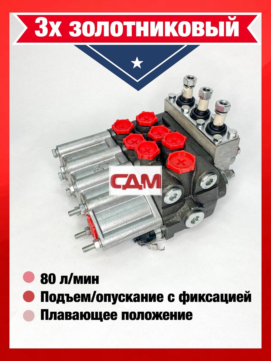 Гидрораспределитель МР 80 - 4/1 - 222 (170) "МЗТГ" (200 бар, самост.работа, подъем/опуск с фикс, плав с фикс) Моноблочный гидрораспределитель золотникового типа серии Р80, изготовленный на Мелитопольском заводе тракторных гидроагрегатов (МЗТГ). Устройство предназначено для управления потоком рабочей жидкости в гидросистемах сельскохозяйственной, дорожно-строительной и специальной техники. Обеспечивает подъем, опускание и фиксацию навесного оборудования. Гидрораспределитель Р80 производства МЗТГ (в современной маркировке часто встречается как МеЗТГ или аналог МР80) — это надежный и проверенный временем узел гидравлической системы. Он пришел на смену старым моделям Р75 и предназначен для работы в гидросистемах с номинальным давлением до 20 МПа (в зависимости от исполнения) и производительностью насоса от 20 до 120 л/мин . Распределитель выполнен по моноблочной (клапанно-золотниковой) схеме, что обеспечивает высокую надежность и ремонтопригодность в полевых условиях . Золотники имеют ше