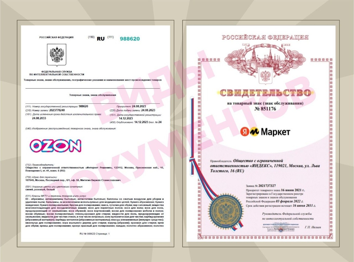 Виды документов. которые выдаются на торговый знак и которые имеют юридическую силу.