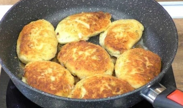 - На сковороде разогрейте растительное масло и жарьте котлеты из картофельного пюре по 3 минуты с каждой стороны до румяной корочки.