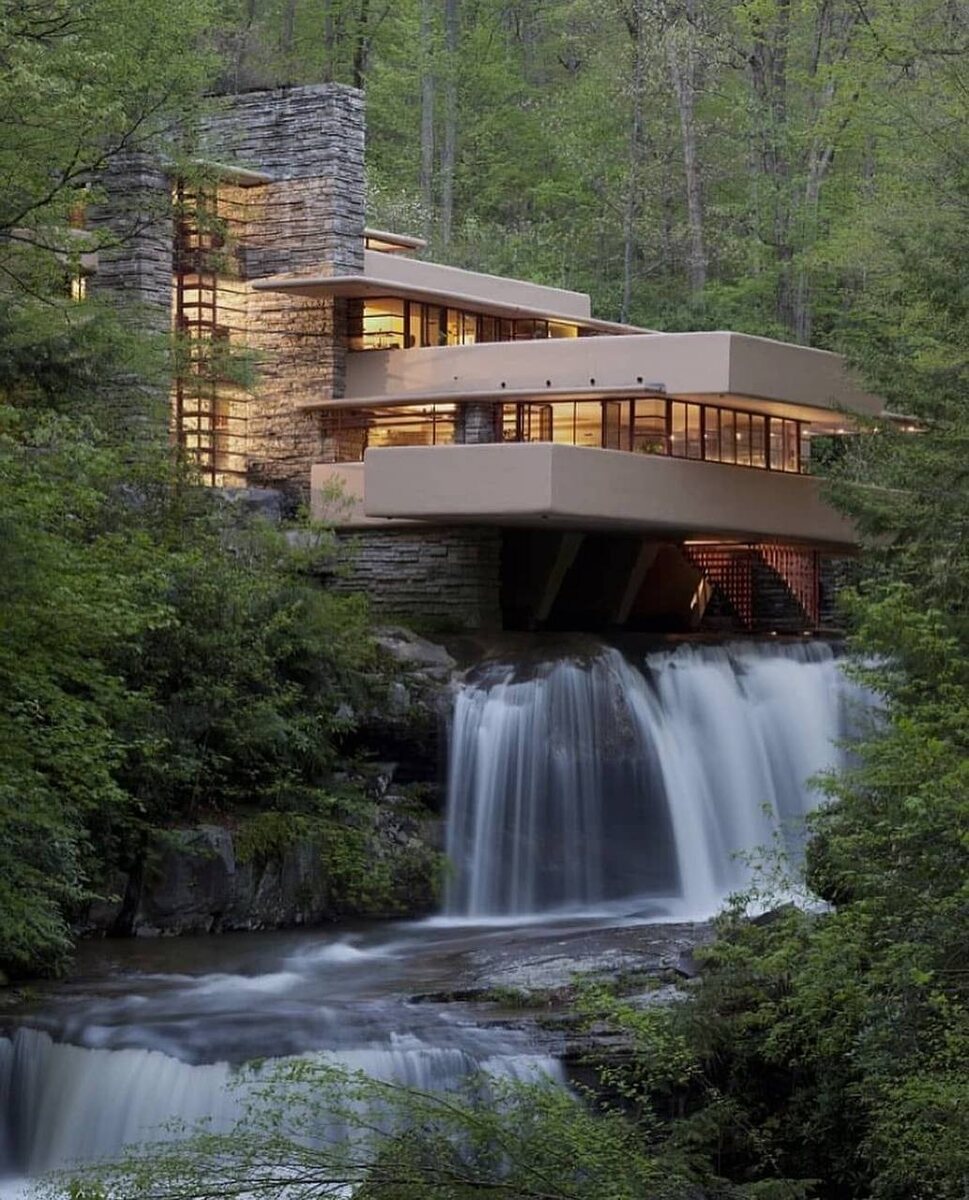 В 1935 году американский архитектор Фрэнк Ллойд Райт проектирует Fallingwater — дом, который меняет привычную логику загородной архитектуры. Он находится в штате Пенсильвания, в лесу рядом с ручьём Bear Run. Вместо того чтобы поставить здание рядом с природой, Райт встраивает его прямо в неё. Дом буквально нависает над водопадом, а звук воды становится частью повседневной жизни. Материалы работают на одну идею: стереть границу между интерьером и ландшафтом, так что пространство не изолирует человека, а возвращает его в контекст. Fallingwater фиксирует сдвиг в мышлении: архитектура может сосуществовать с природой, а не доминировать над ней. Иногда лучшее решение — это не выделиться, а точно встроиться. by LA Media