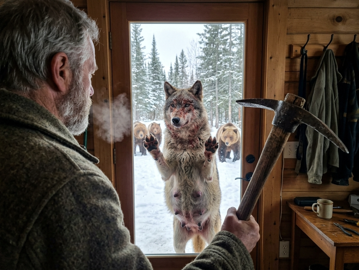 В ту зловещую ночь старик Питал печь и слушал завывания ветра, как вдруг различил глухой удар в дверь. Выглянув в обледенелое окно, он остолбенел. На крыльце, спасаясь от ледяного ада, еле держалась на ногах беременная, изможденная волчица.