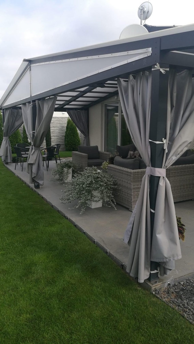 — Крыша и шторы для перголы для защиты от солнца, ветра и дождя. Для уличных качелей: