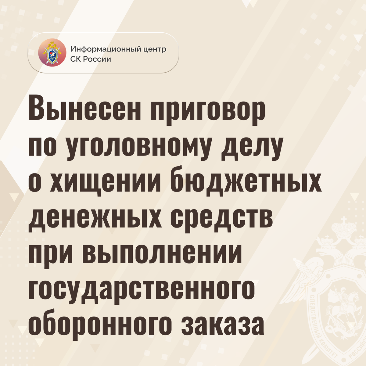 Вынесен приговор по уголовному делу о хищении бюджетных денежных средств при выполнении государственного оборонного заказа