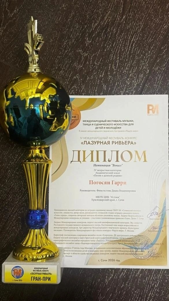 ! Для коллективов Центра национальных культур «Истоки» минувшие выходные стали настоящим праздником побед и достижений. Наши артисты блистали на двух крупных международных фестивалях, принеся в копилку Центра множество наград, включая заветные Гран-при! «Лазурная Ривьера»: феерия голосов и танцев 3 и 4 апреля образцовый вокальный ансамбль «Бельканто» и ансамбль армянской песни и танца «Аракс» под руководством Дианы Феоктистовой покоряли жюри IV Международного фестиваля-конкурса «Лазурная Ривьера». Результаты превзошли все ожидания: · «Бельканто» завоевал Гран-при! · Солист Гарри Погосян стал Лауреатом I степени и обладателем Гран-при! · Еще 15 солистов «Бельканто» получили 15 дипломов Лауреата I степени и 2 диплома Лауреата II степени. · Ансамбль «Аракс» трижды удостоился звания Лауреата I степени!