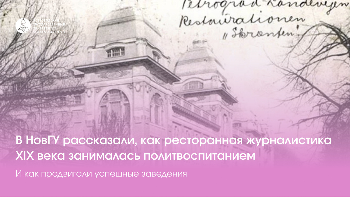 В НовГУ рассказали, как ресторанная журналистика XIX века занималась политвоспитанием