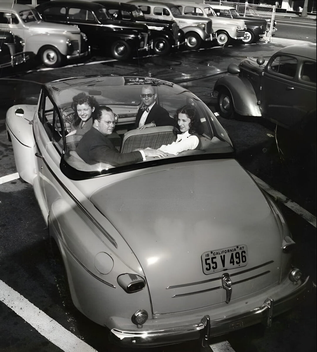 Фотография передаёт дух послевоенной автомобильной моды, когда инженеры и дизайнеры использовали авиационные технологии в гражданских транспортных средствах. Стеклянная крыша стала символом инноваций, роскоши и стремления к необычным решениям, которые делали ретрокары Лос-Анджелеса узнаваемыми и запоминающимися.