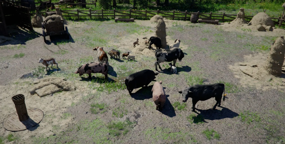Животноводство приносит стабильный пассивный доход, а также снабжает героя провизией и ценным сырьем вроде шерсти или молока. Достаточно отловить разнополую пару одного вида, привести их домой и дождаться пополнения. Механика становится доступной после возведения постройки в лагере на Волчьем холме. Процесс строительства запускается при прохождении квеста фракции Серогривых под названием «Поле изобилия». Если тратить время на поиск ресурсов нет желания, всегда можно рассмотреть готовые аккаунты с уже обустроенной базой. Размножение стартует исключительно после официальной регистрации взрослых самца и самки. Проведите пойманного зверя через крайнюю правую стойку вашего вольера. Учет питомцев ведет NPC по имени Бен. Появление детенышей занимает от пяти до десяти внутриигровых суток. Козам требуется минимальный срок, тогда как коровам нужно гораздо больше времени. Места обитания нужных зверей: Малышам необходимо качественное питание для превращения во взрослых особей. Заполняйте кормушку