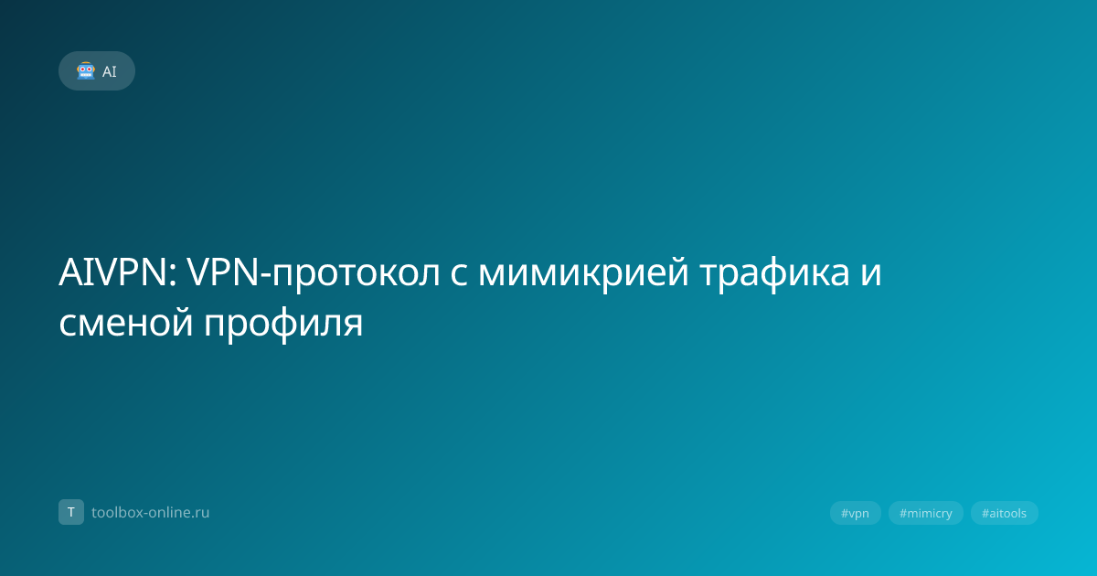 AIVPN – это современный VPN‑протокол, разработанный в 2022 году командой исследователей безопасности. Основная идея протокола – скрыть характер VPN‑трафика, делая его неотличимым от обычного HTTPS‑соединения. Для этого используется мимикрия трафика: каждый пакет шифруется и упаковывается в структуру, идентичную обычному TLS‑соединению, что позволяет обходить большинство DPI‑систем без риска блокировки. Технология основана на адаптивном алгоритме, который анализирует текущие сетевые условия и выбирает оптимальный шаблон пакета. По результатам независимых тестов, проведённых в 2023 году, AIVPN снижает вероятность обнаружения на 87% по сравнению с традиционными OpenVPN или WireGuard. Протокол использует собственный транспортный слой, построенный на основе QUIC‑пакетов, что позволяет обходить ограничения UDP‑фильтрации. В тестовой сети с 100 мбит/с загрузкой и 20 мс пингом, AIVPN показал следующую статистику: Для обеспечения стабильности используется адаптивный балансировщик нагрузки, кото