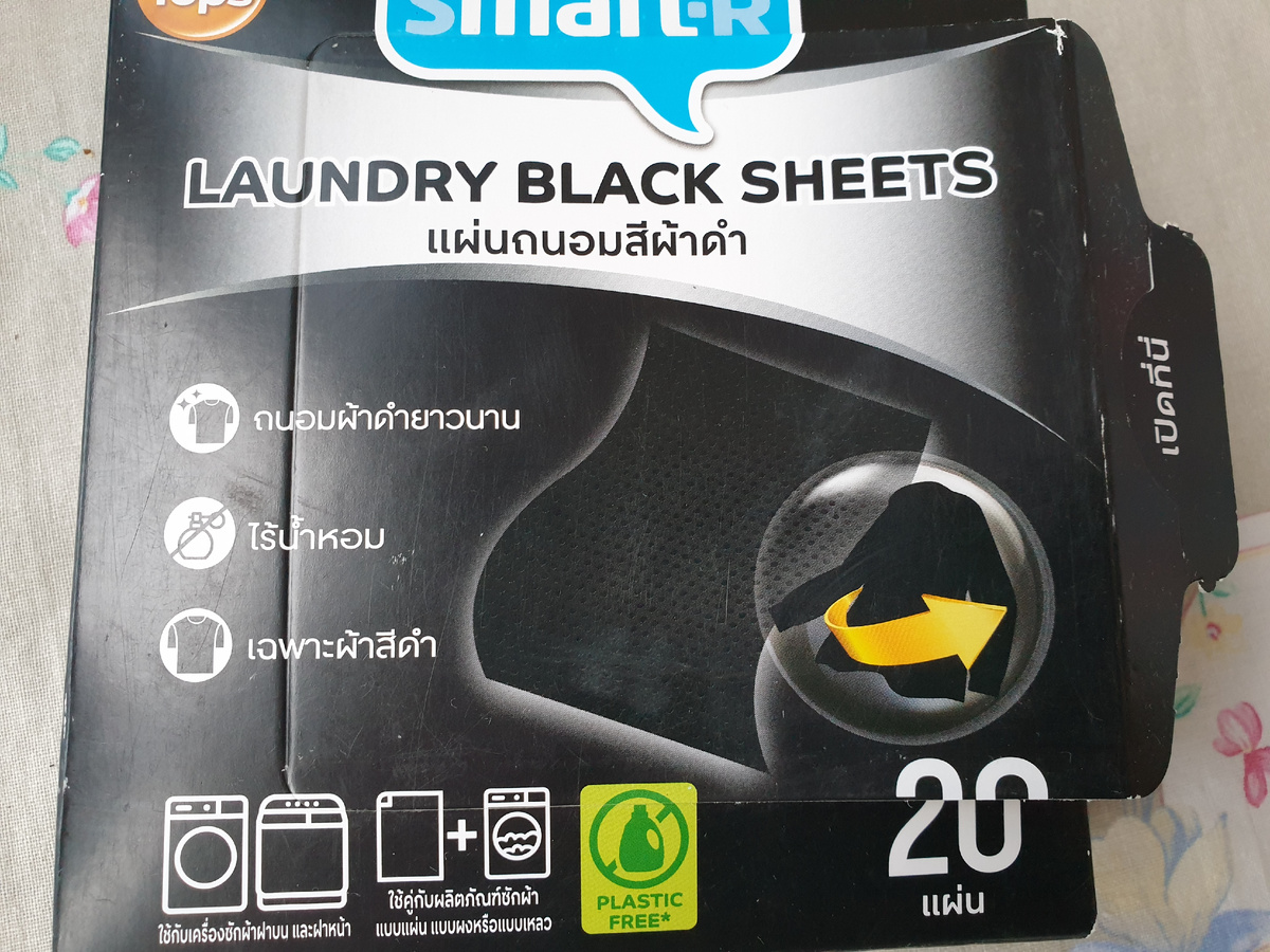 Салфетки для стирки черного белья. Раньше вообще на это не обращали внимание и использовали гель для стирки темных вещей. А тут в магазине Tops увидели и решили, что надо взять и попробовать. Цена небольшая около 86 бат. Коробочка маленькая, в ней 20 листов.
