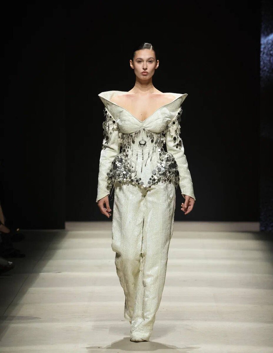 Коллекции студентов объединяет тема — «Назад в будущее». Молодые дизайнеры обратились к архиву моды разных эпох: переосмыслили исторические образы, техники прошлого и эволюцию материалов, чтобы встроить их в контекст сегодняшнего дня. В линейке — авторские модели на стыке наследия и современности. Канал Московской недели моды теперь можно найти в MAX. Подписывайтесь!