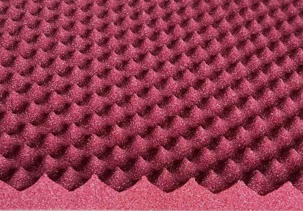 … 🚫 Как этого добиться? Вторым слоем на виброизоляцию устанавливаем Шумоff FanTon. Это мягкий (но плотный!) материал бордового цвета с уникальной рельефной поверхностью в виде пирамидок. Почему это круто? ✅ Он «ловит» и гасит звук именно в том диапазоне, который раздражает больше всего (1000–6000 Гц). ✅ Из-за своей мягкости он идеально «обтекает» сложные формы салона. Монтаж становится быстрым и комфортным. ✅ Влагостойкий клей держит намертво, но при этом материал легко корректируется при установке. Для кого это? Для тех, кто ценит тишину и чистоту салона. Кстати, о чистоте: у нас есть сертификат гипоаллергенности. Никакой «химии» в салоне — запах уходит за пару дней. Мы рекомендуем использовать FanTon на крыше, дверях, арках и крышке багажника. Точный расход лучше рассчитать индивидуально — заходите в наш калькулятор на сайте shumoff77.ru