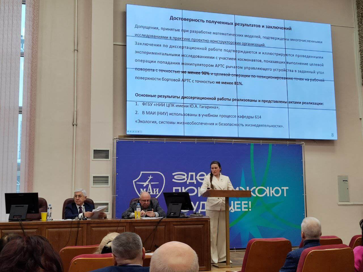 Российский космонавт Анна Кикина защитила кандидатскую диссертацию на кафедре Московского авиационного института (национальный исследовательский университет) (МАИ). Научная работа посвящена разработке расчетно-экспериментального метода повышения точности позиционирования исполнительных органов антропоморфных робототехнических систем для перспективных пилотируемых космических программ. Диссертация служит значимым шагом к обеспечению технологического суверенитета и мирового лидерства России в освоении космического пространства. Исследование Анны Кикиной базируется в том числе на разработках АО «НПО «Андроидная техника», где технологии управления антропоморфными роботами составили методологическую основу научной работы, подтверждая высокую степень актуальности создания сложных робототехнических систем и их востребованность в космической отрасли. Комиссия МАИ единогласно (17 голосов «за») присудила кандидата наук, подтвердив высокую научную ценность работы. «Роботы значительно расширяют в